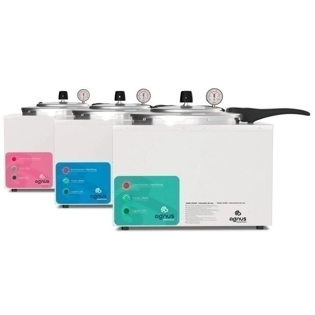 A autoclave AVL8 é um equipamento utilizado para a esterilização de materiais com o uso de calor úmido sob pressão. é equipada com dispositivos que oferecem segurança total no processo de esterilização sendo eles: manômetro para indicação de pressão (psi), válvula de escape de pressão, disjuntor termo-magnético, válvula de segurança repetitiva e tampa que impede a abertura enquanto houver pressão interna.