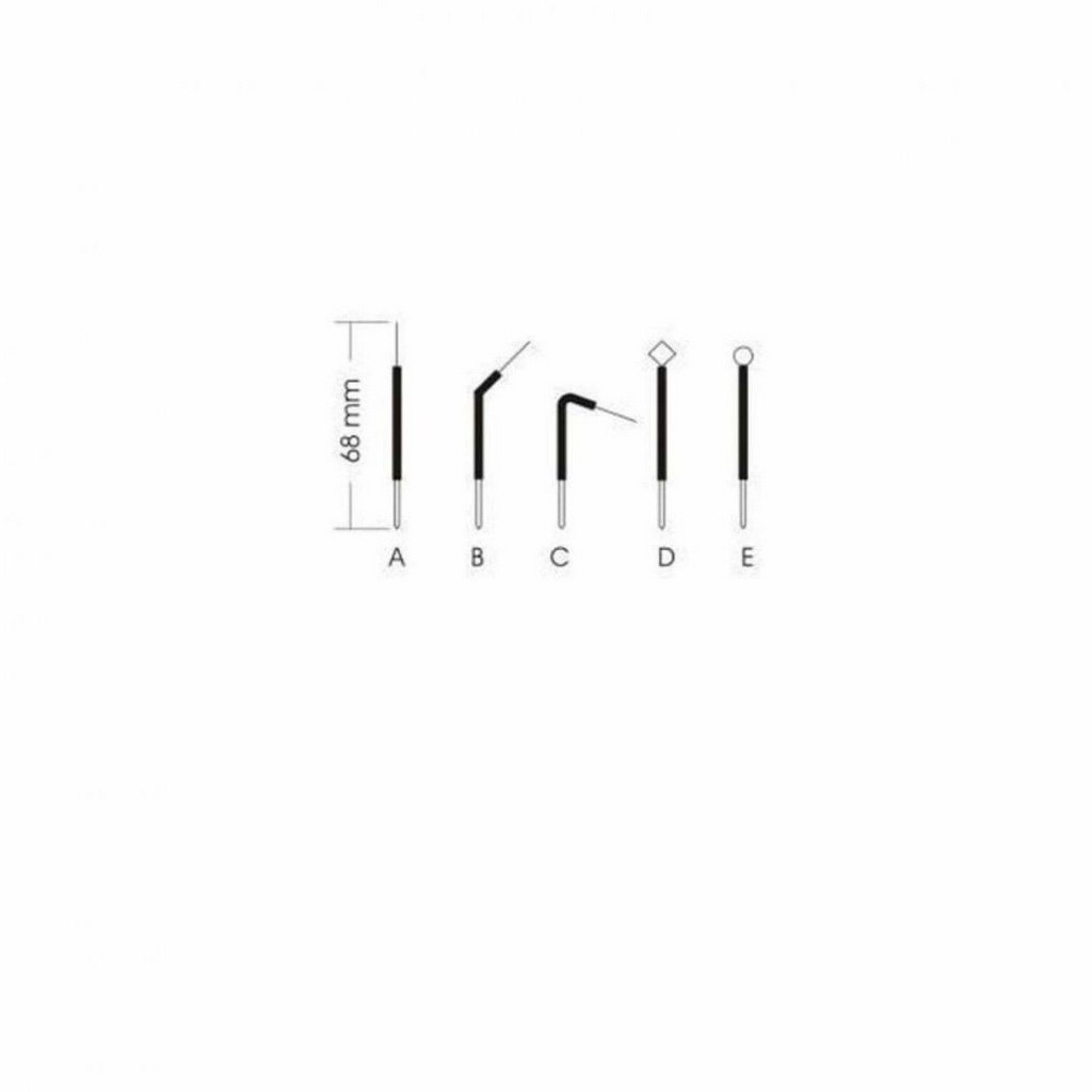 Modelo A, B, C – Utilizados para corte e coagulação simultaneamente ou pode ser usado apenas para cauterização, é preconizado o contato apenas da ponta do eletrodo no tecido para melhorar a eficiência. Modelo D, E – Utilizados para gengivoplastia (cirurgia plástica da gengiva) após o corte em gengivéctomia deve ser realizado uma regularização dos bordos da incisão.
