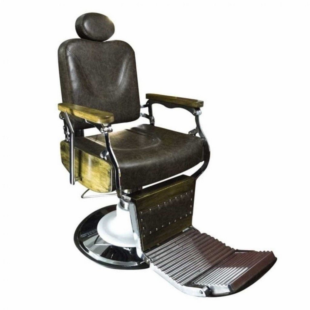 Cadeira para Barbearia Reclinável Chicago Cor Madeira Terra Fértil