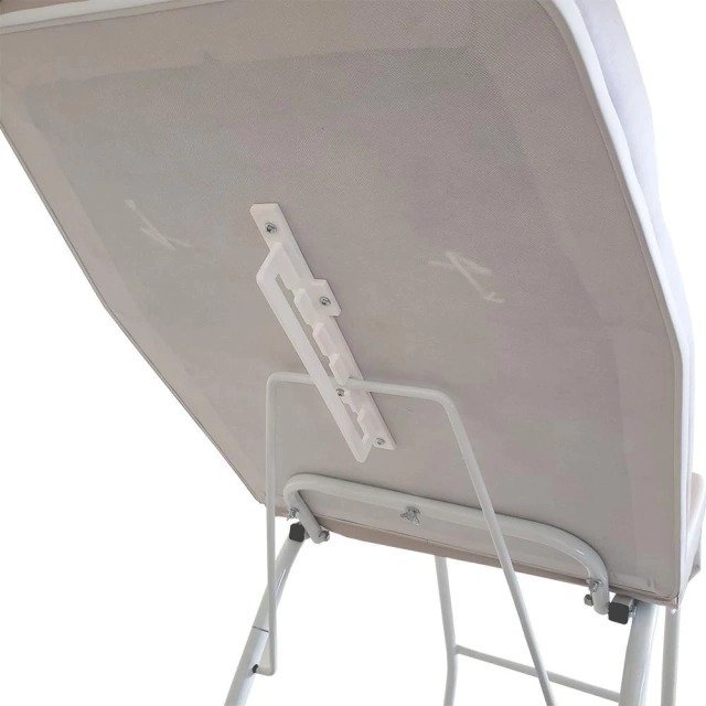 Reclínio: possui 5 regulagens no encosto e 5 regulagens nos pés, ficando totalmente deitada na horizontal e também mais sentada que na foto.